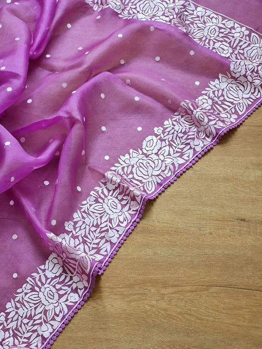 Samson | Organza silk parsi gara with embroidery and lace purple