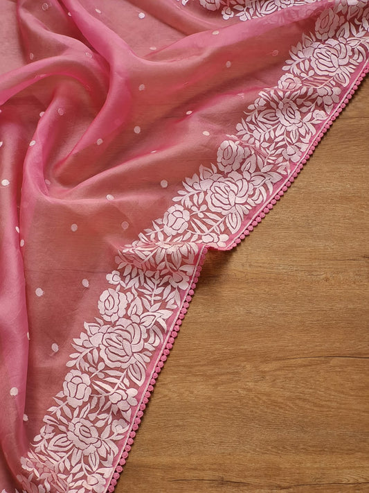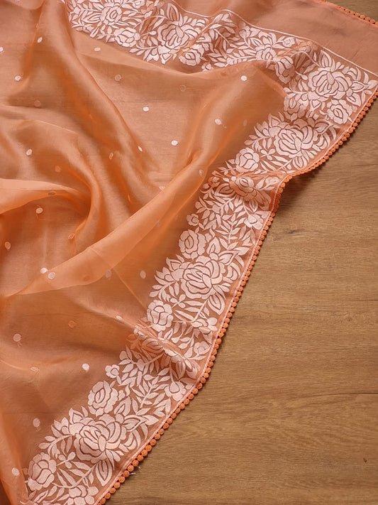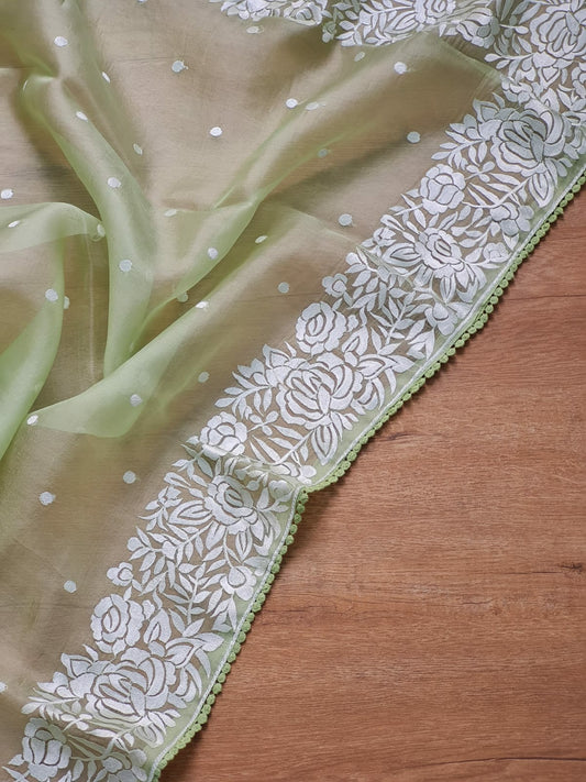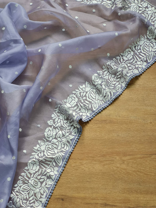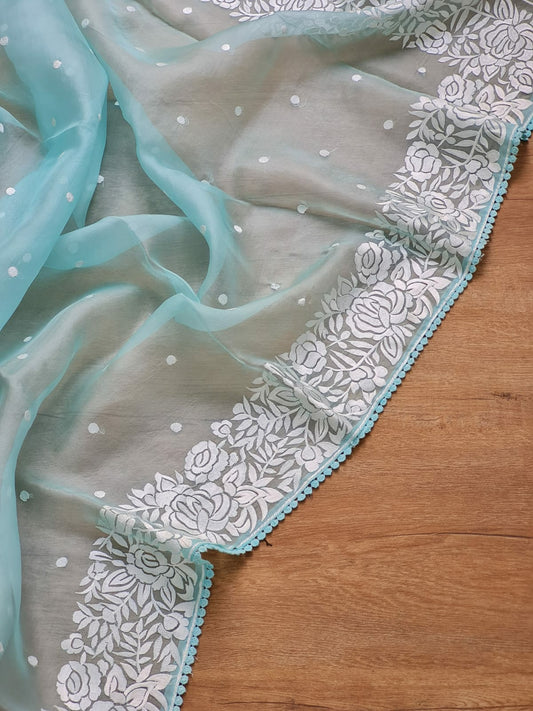 Somsaina| Organza silk parsi gara with embroidery and lace