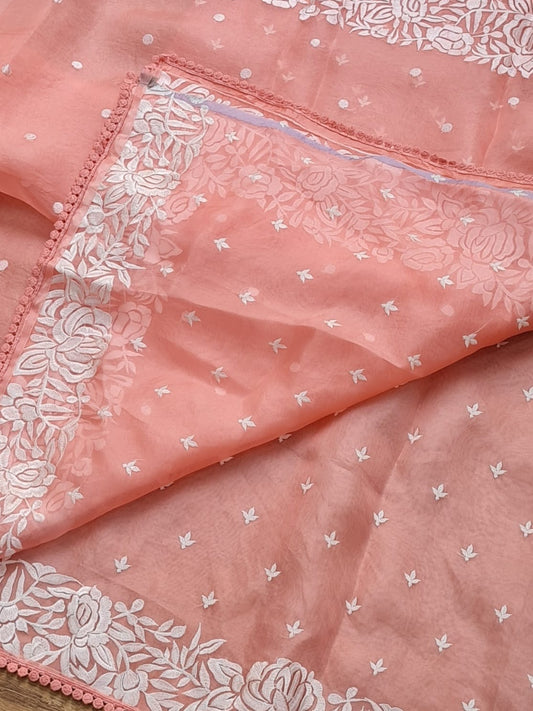 Samaasvah| Organza silk parsi gara with embroidery and lace