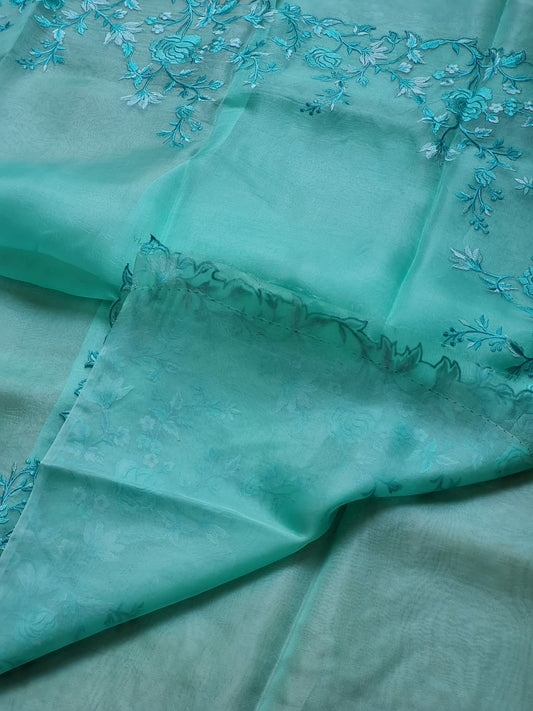 Samsoan| Organza silk parsi gara with embroidery and lace