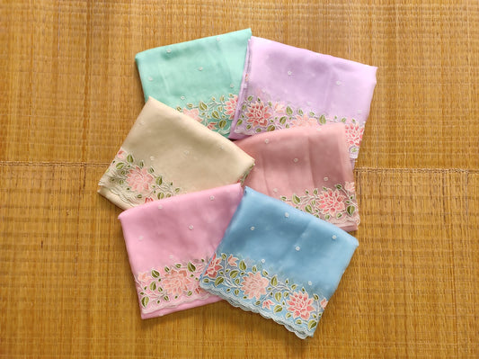 Somsain| Organza silk parsi gara with embroidery and lace