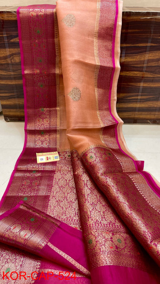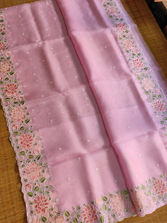 Zoey | Pure organza silk saree (Pink)
