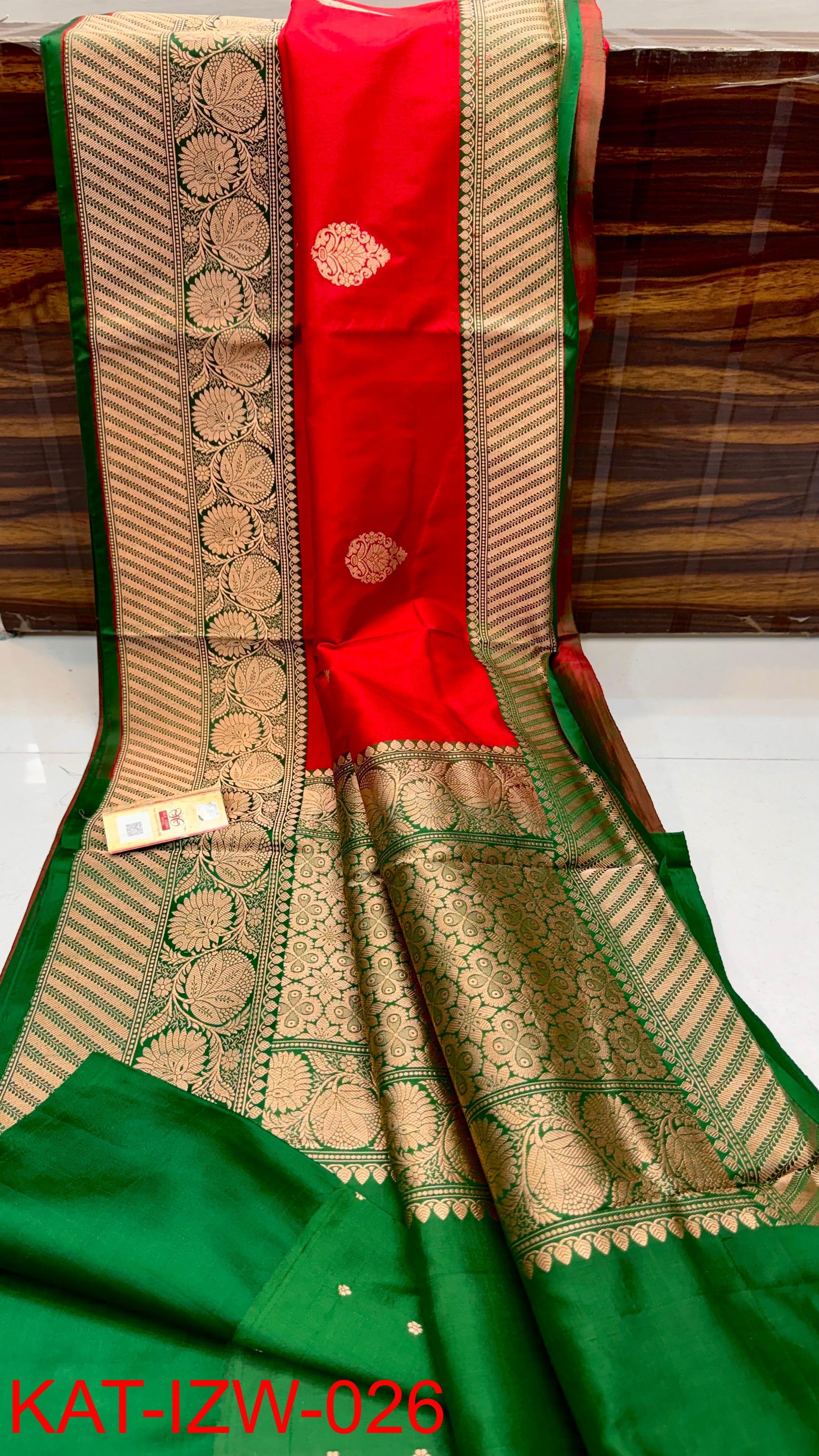 A saree steeped in cultural richness. The pure Handloom KATAN silk fabric pairs beautifully with its Pure Antique zari detailing. Includes blousepiece | SILK MARK CERTIFIED.
