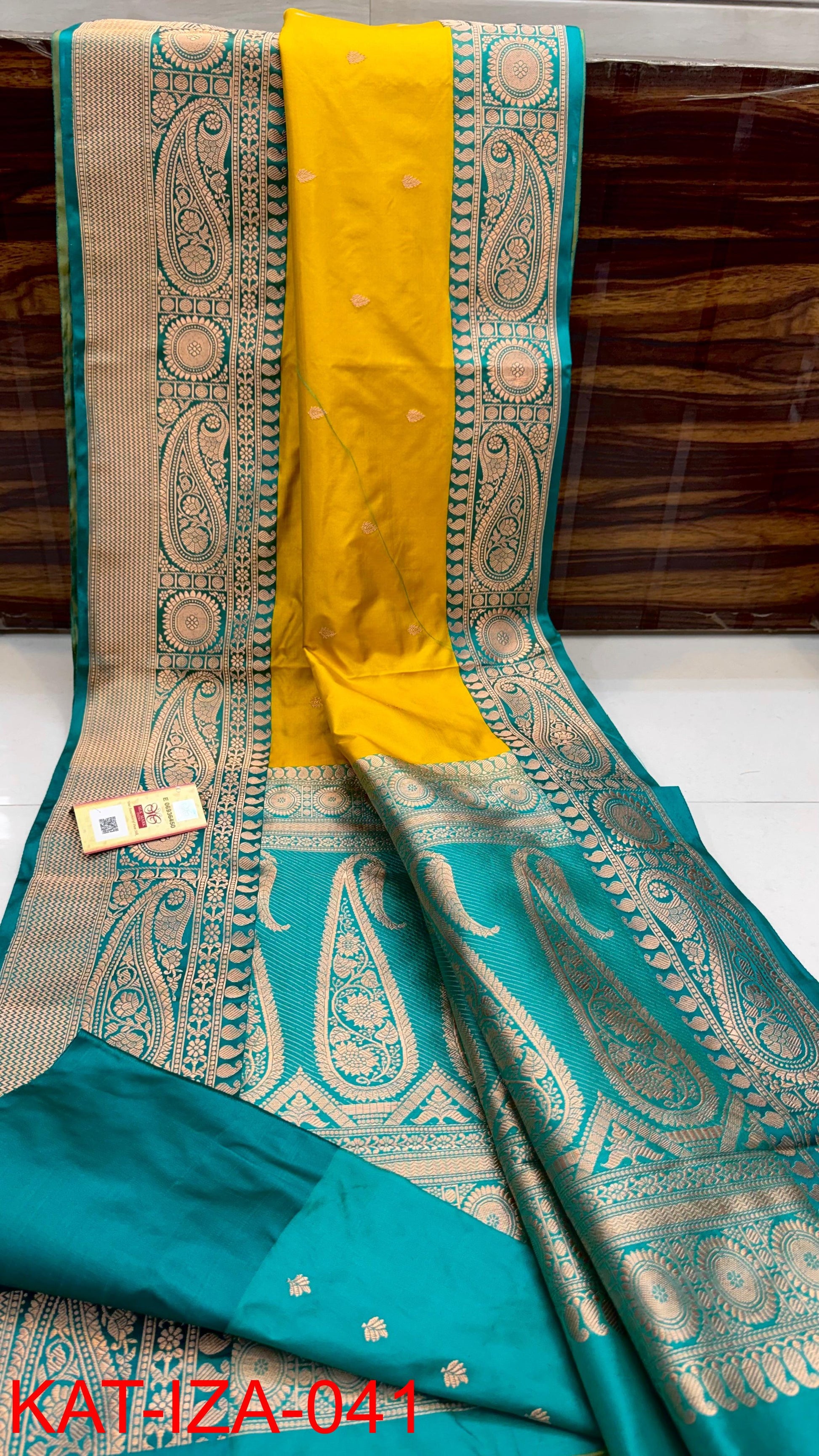 Dry clean only. To protect the delicate threads of the sari, please avoid any pressure on the tips- avoid brush cleaning, or wringing. Iron on medium heat or spread a towel on top of the saree during ironing. Steam iron is recommended. It is ideal to dry clean stained silk sarees immediately. Unfold and change the fold of the silk sarees from time to time. This will help avoid tears and damage along the creases. Store your silk sarees by wrapping them in soft muslin clothes or fabric saree