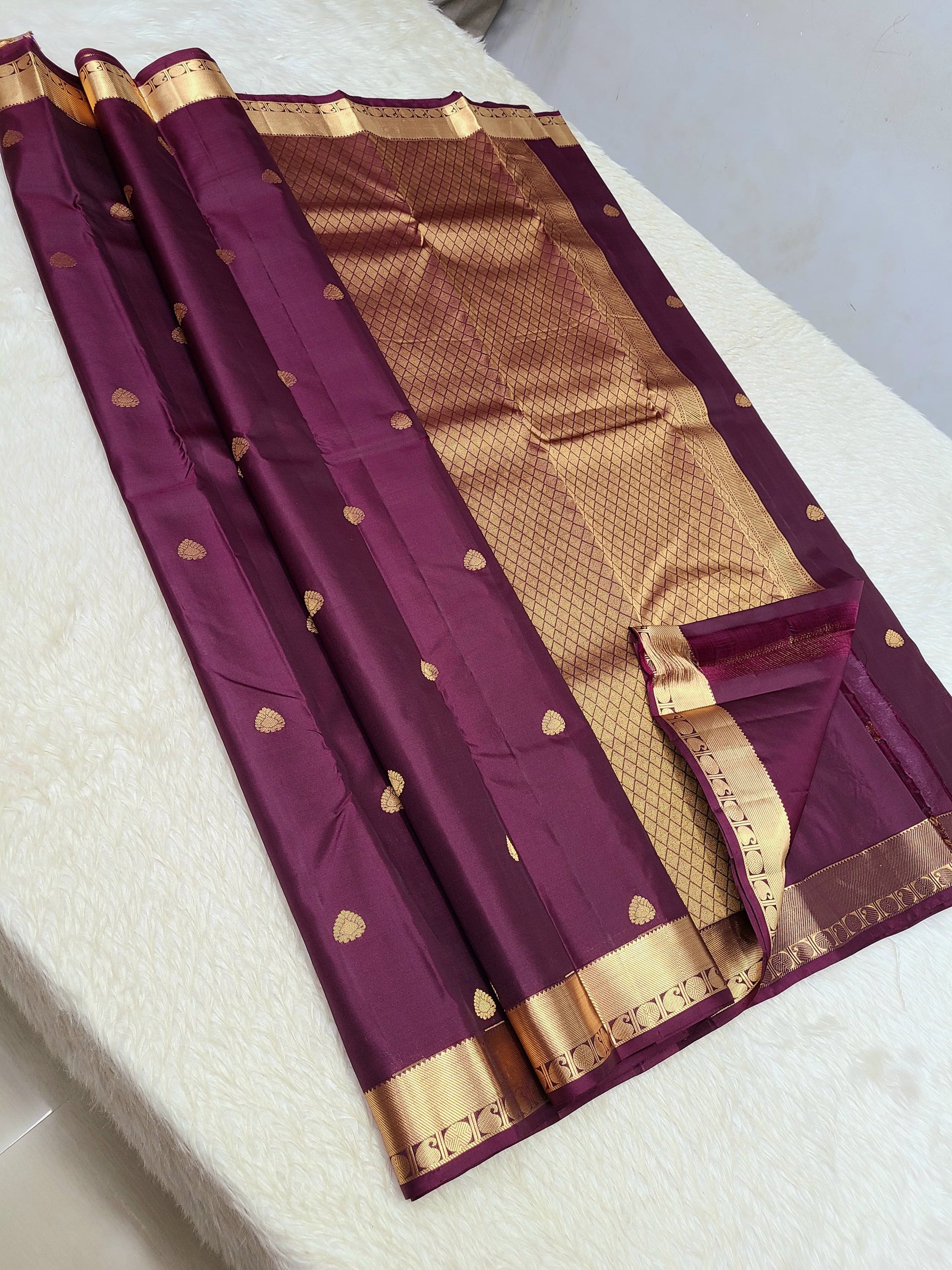 Known as the “Queen of Silks,” this Kanjivaram pure silk saree is an epitome of grace, elegance, and heritage