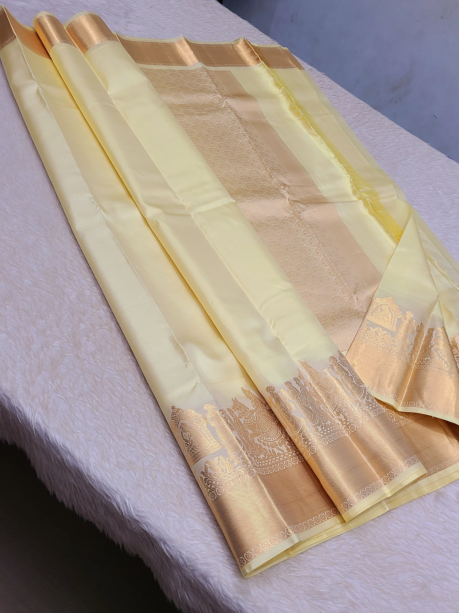 Each thread of this saree celebrates South Indian craftsmanship. The plain silk body exudes serenity, while the Pallakku zari border reflects the richness of cultural heritage.