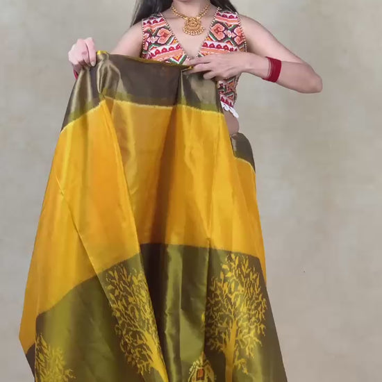 Dry clean only. To protect the delicate threads of the sari, please avoid any pressure on the tips- avoid brush cleaning, or wringing. Iron on medium heat or spread a towel on top of the saree during ironing. Steam iron is recommended. It is ideal to dry clean stained silk sarees immediately. Unfold and change the fold of the silk sarees from time to time. This will help avoid tears and damage along the creases. Store your silk sarees by wrapping them in soft muslin clothes or fabric saree