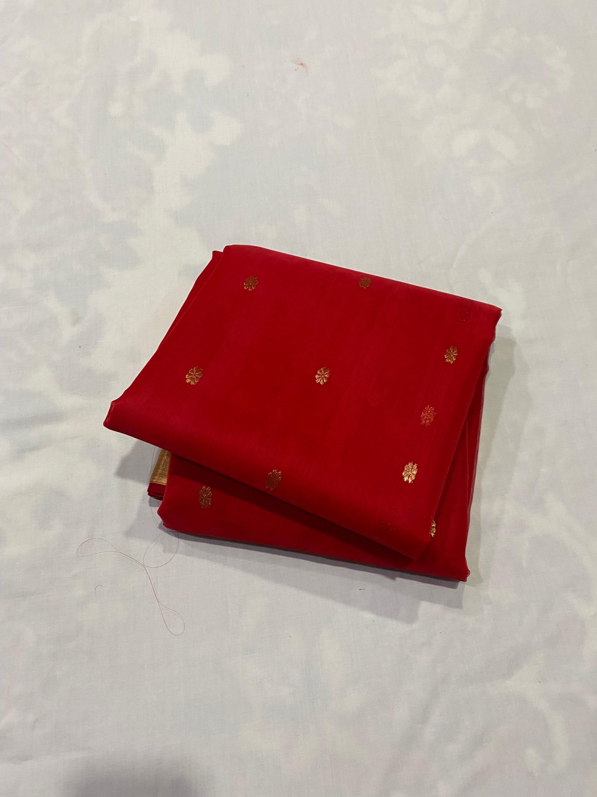 Dry clean only. To protect the delicate threads of the sari, please avoid any pressure on the tips- avoid brush cleaning, or wringing. Iron on medium heat or spread a towel on top of the saree during ironing. Steam iron is recommended. It is ideal to dry clean stained silk sarees immediately. Unfold and change the fold of the silk sarees from time to time. This will help avoid tears and damage along the creases. Store your silk sarees by wrapping them in soft muslin clothes or fabric saree