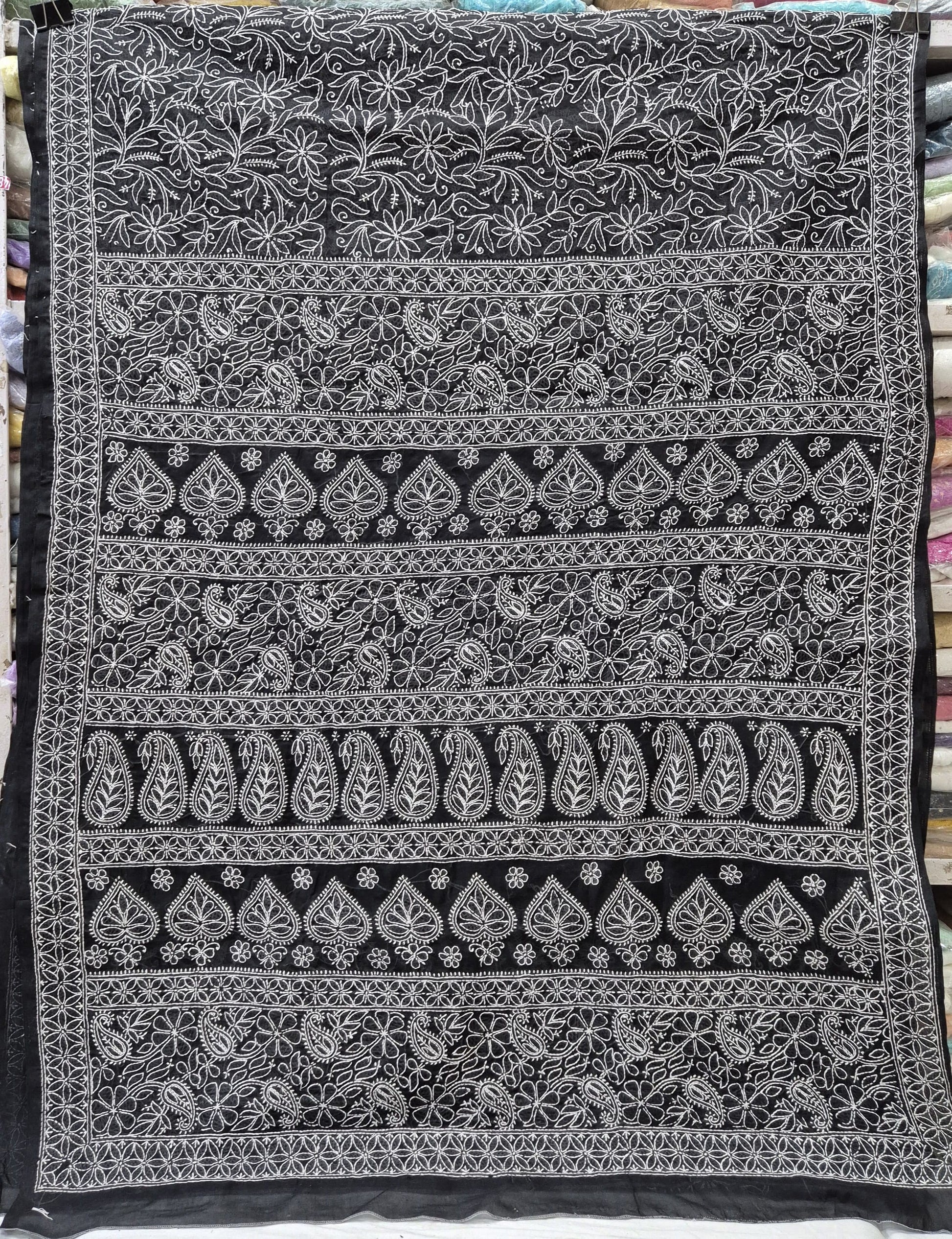 Experience Timeless Elegance: Drape yourself in the classic charm of our Chikankari saree, crafted from breathable cotton fabric. It features intricate shadow and murri fine work embroidery throughout, meticulously done with pristine Anchor white thread. This saree measures a generous 6.5 meters and includes a matching blouse piece for a complete look.