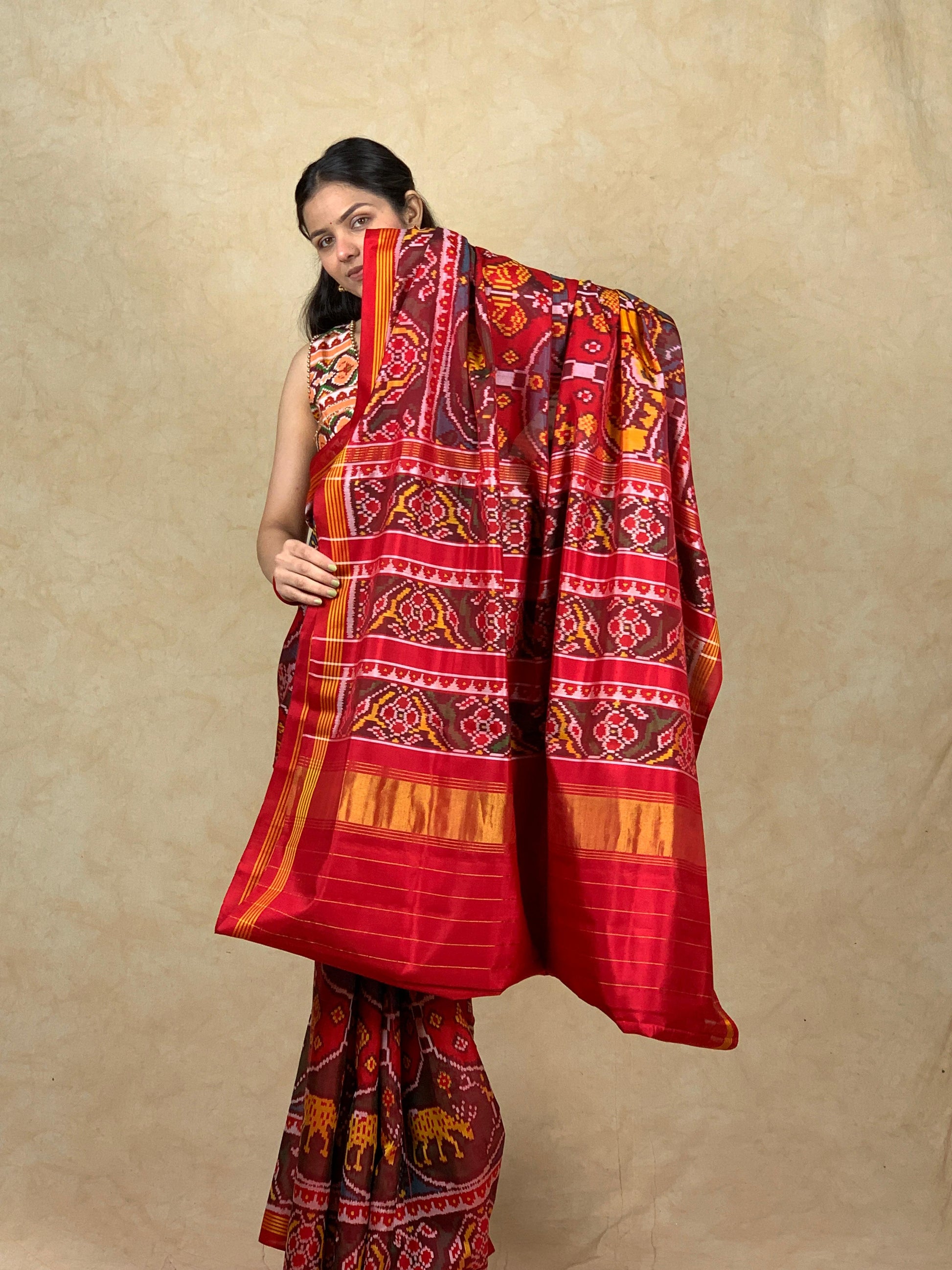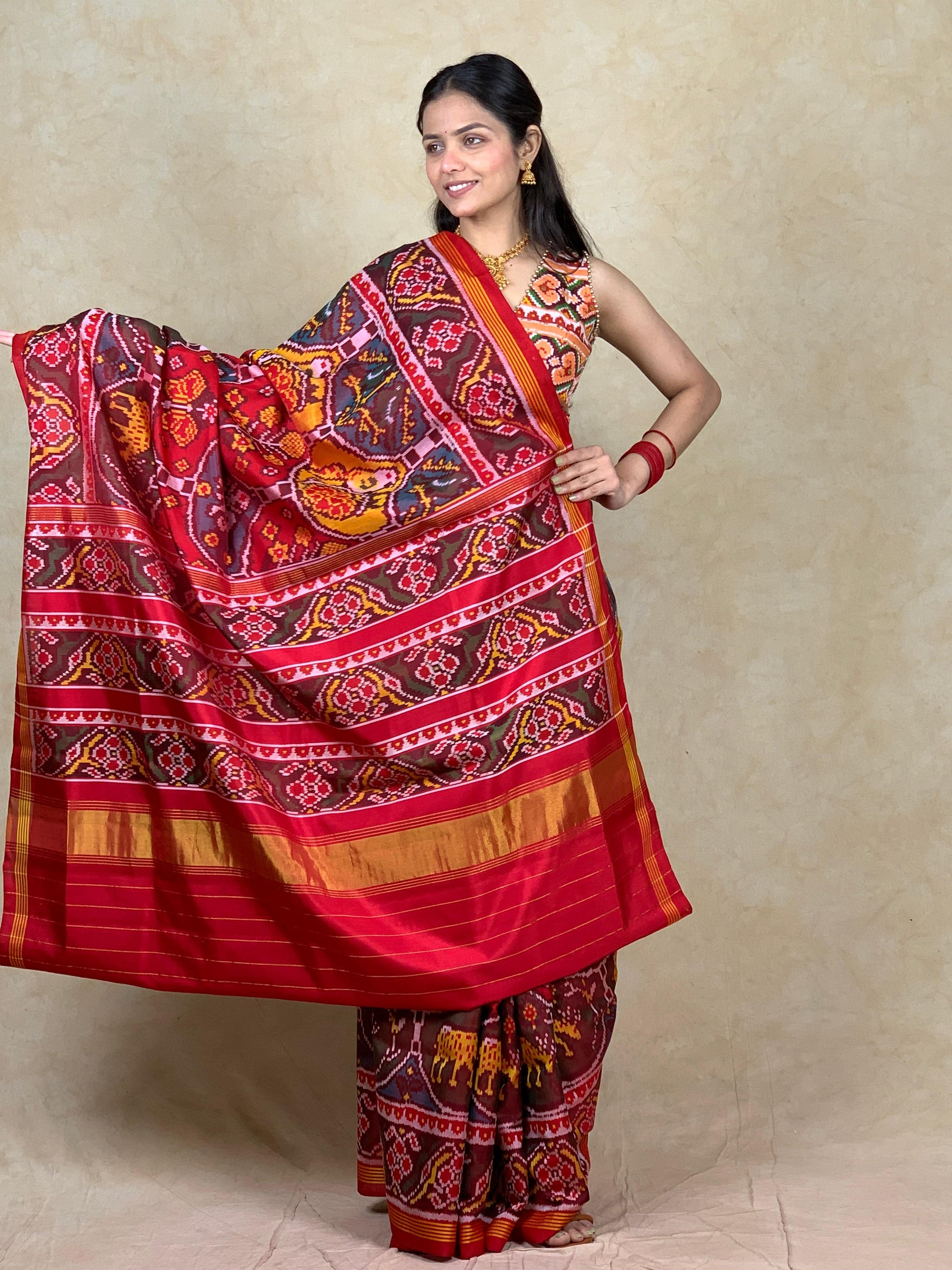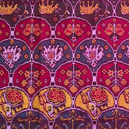 - Detailed double ikat weaving technique, where both the warp and weft threads are dyed before weaving, is the cornerstone of Patola's distinct character. This meticulous process allows for the creation of intricate geometric and floral patterns on both sides of the saree, a hallmark of a genuine Patola