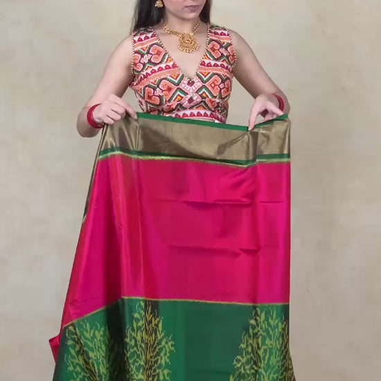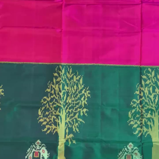 Dry clean only. To protect the delicate threads of the sari, please avoid any pressure on the tips- avoid brush cleaning, or wringing. Iron on medium heat or spread a towel on top of the saree during ironing. Steam iron is recommended. It is ideal to dry clean stained silk sarees immediately. Unfold and change the fold of the silk sarees from time to time. This will help avoid tears and damage along the creases. Store your silk sarees by wrapping them in soft muslin clothes or fabric saree