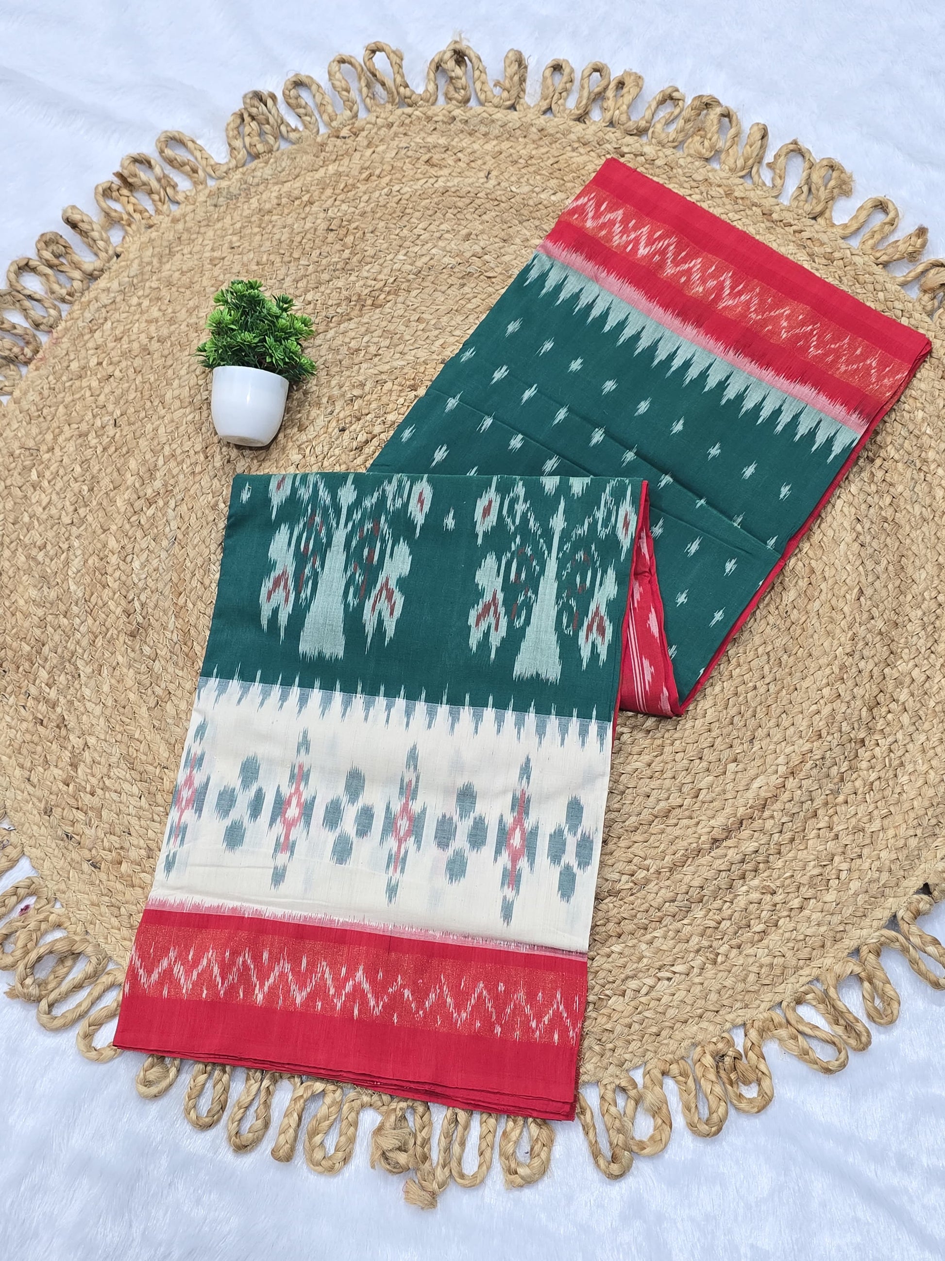 This saree features bold Ikat diamonds, adding a statement touch to your ethnic collection.