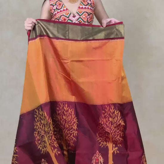 Dry clean only. To protect the delicate threads of the sari, please avoid any pressure on the tips- avoid brush cleaning, or wringing. Iron on medium heat or spread a towel on top of the saree during ironing. Steam iron is recommended. It is ideal to dry clean stained silk sarees immediately. Unfold and change the fold of the silk sarees from time to time. This will help avoid tears and damage along the creases. Store your silk sarees by wrapping them in soft muslin clothes or fabric saree