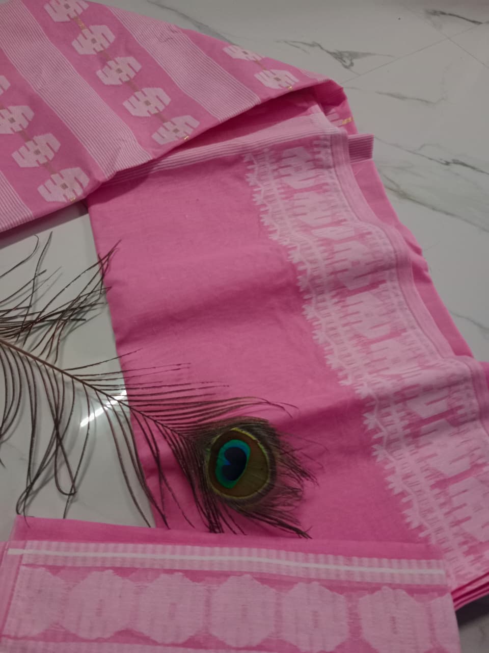 Charming Jamdani motifs spread across ultra-soft cotton make this saree a timeless piece for refined everyday wear.