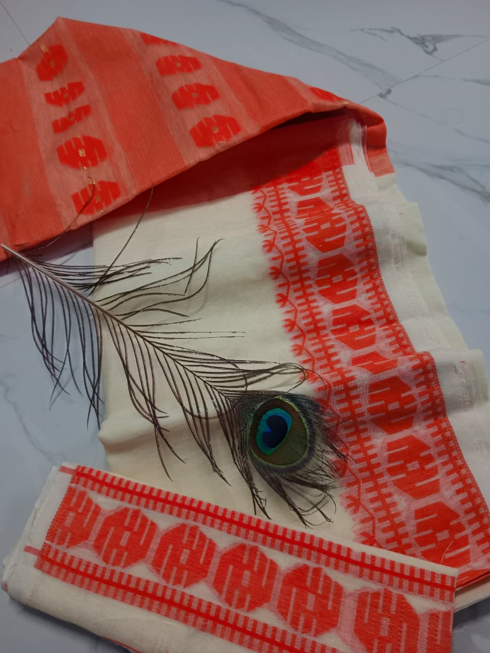 Crafted to perfection, this Soft Cotton Jamdani saree brings together breathable texture and traditional weaving beauty.