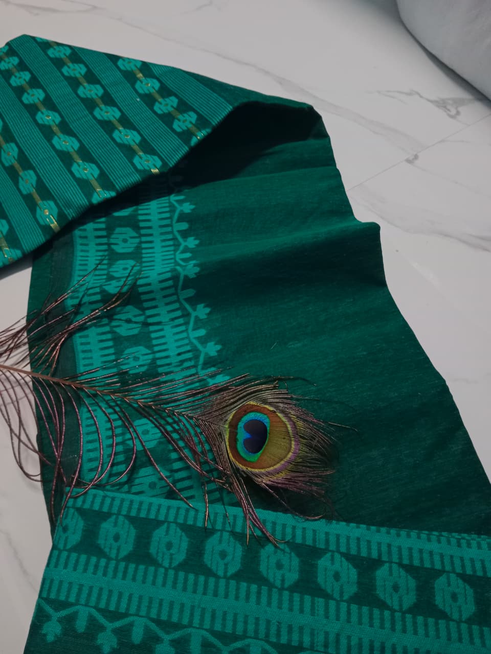 Soft, breathable, and beautifully handwoven, this Jamdani saree delivers effortless traditional charm.