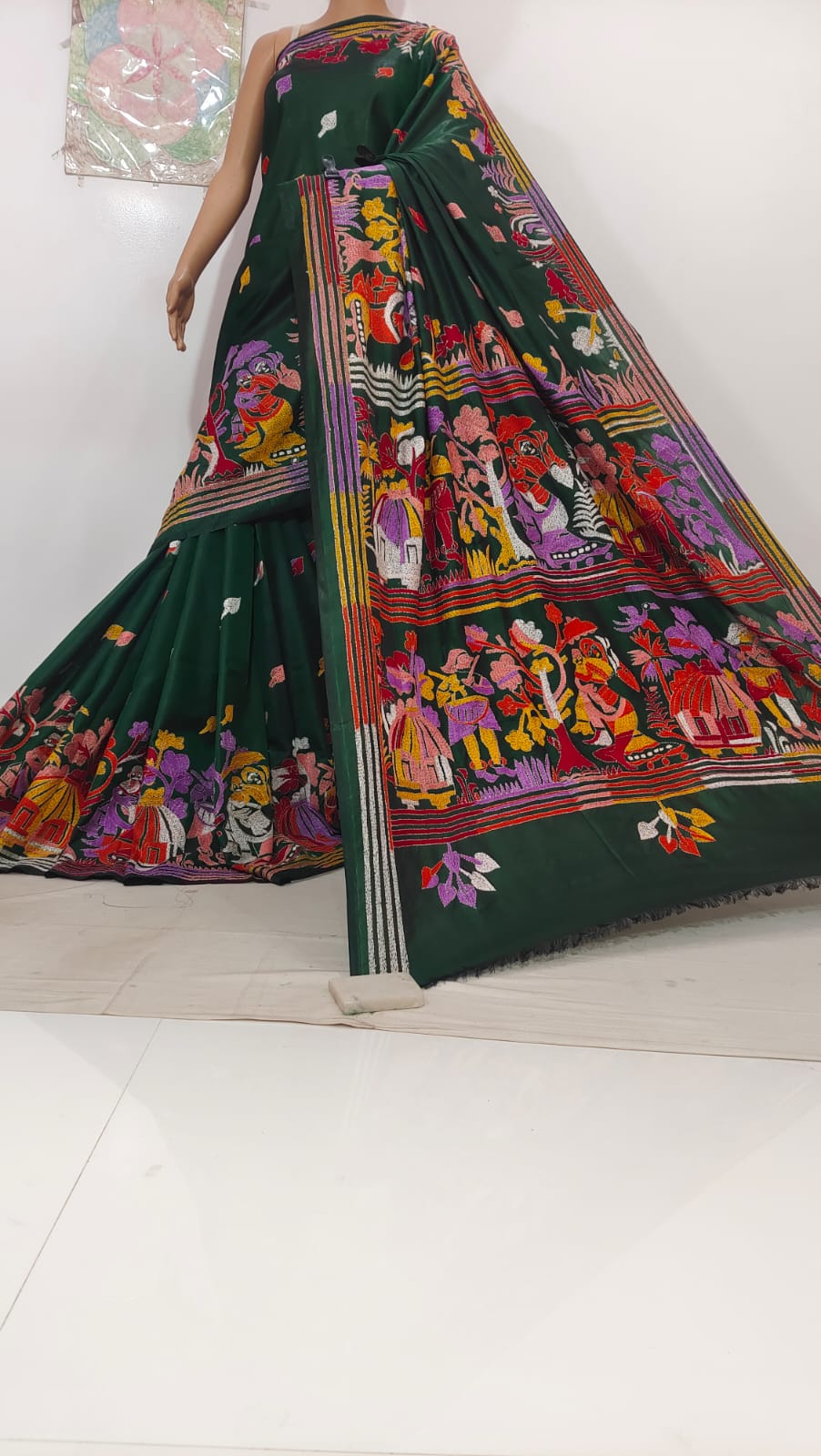 Kantha artistry transforms this saree into floral poetry.