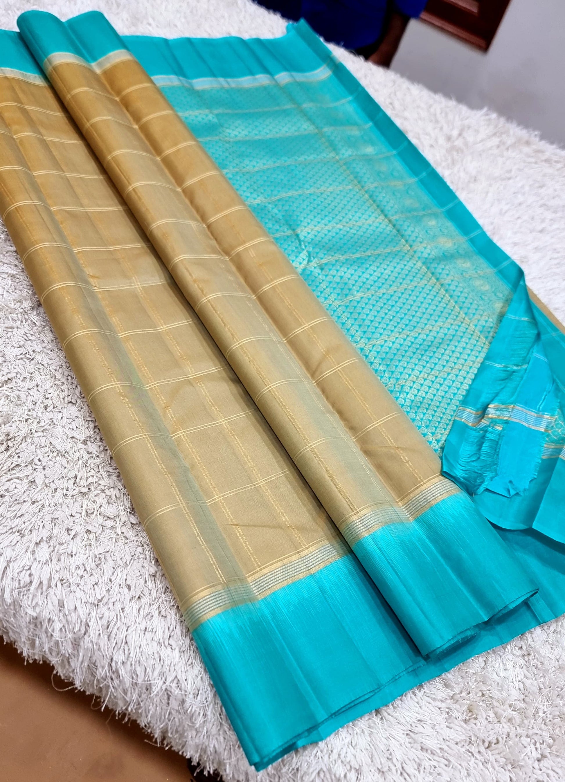 Dry clean only. To protect the delicate threads of the sari, please avoid any pressure on the tips- avoid brush cleaning, or wringing. Iron on medium heat or spread a towel on top of the saree during ironing. Steam iron is recommended. It is ideal to dry clean stained silk sarees immediately. Unfold and change the fold of the silk sarees from time to time. This will help avoid tears and damage along the creases. Store your silk sarees by wrapping them in soft muslin clothes or fabric saree