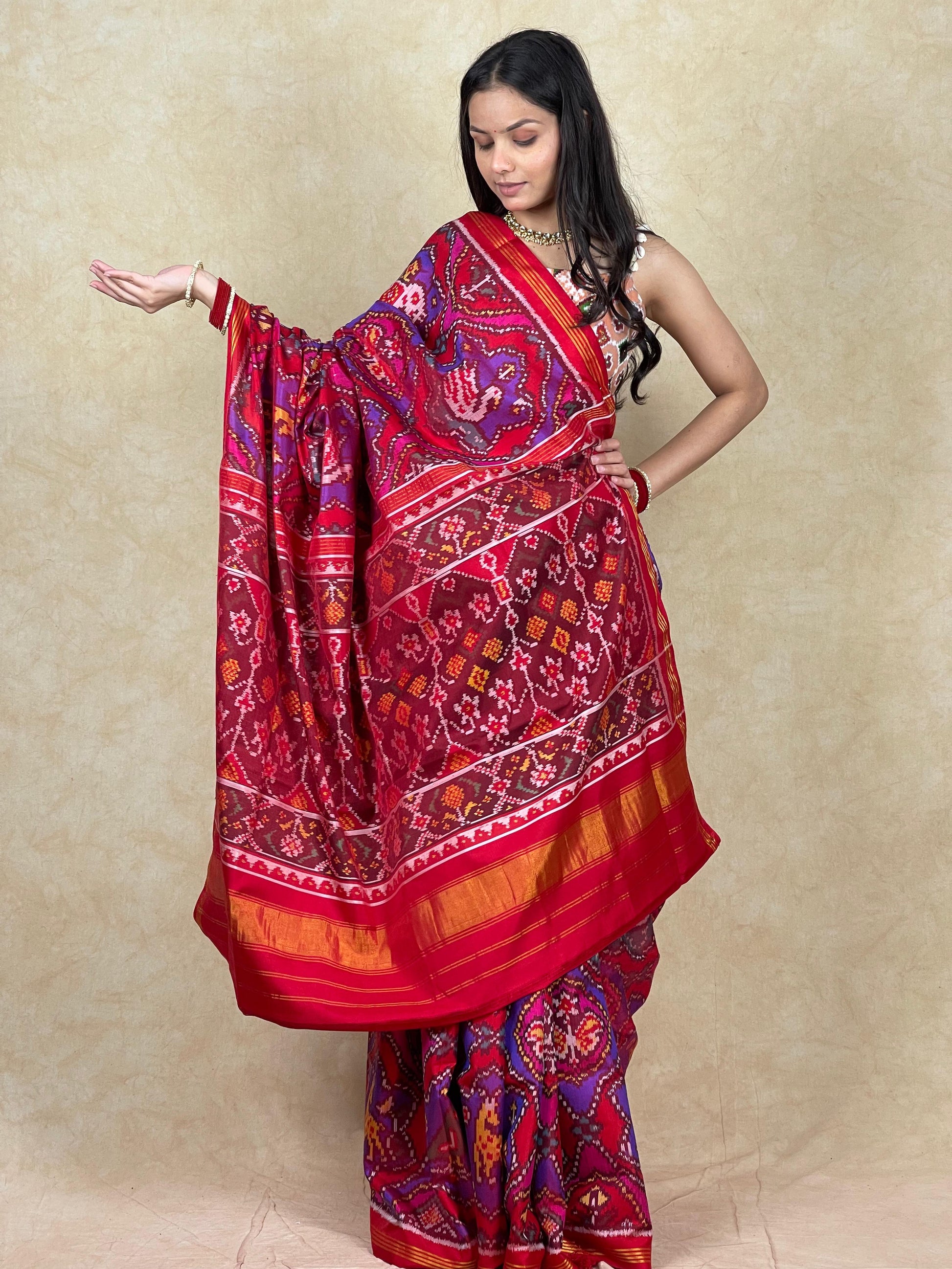Intricately woven patola saree in pure silk.