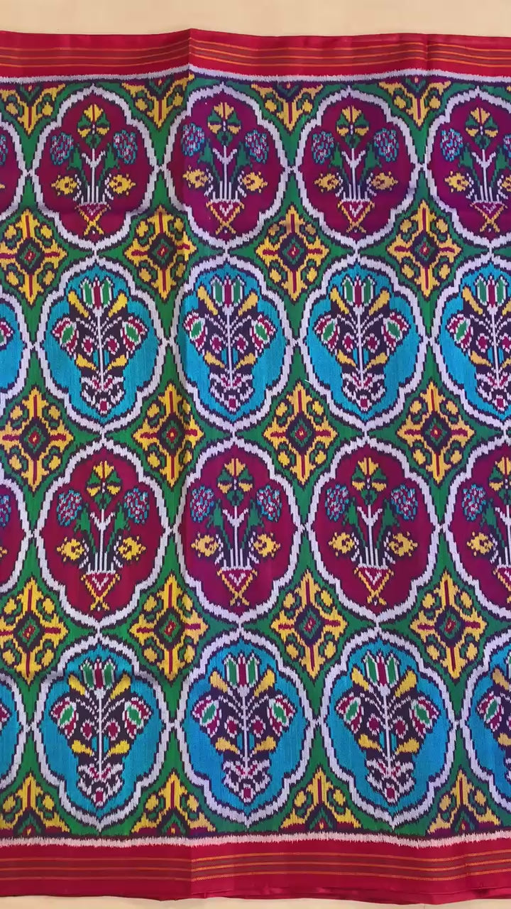 Intricately woven patola saree in pure silk.