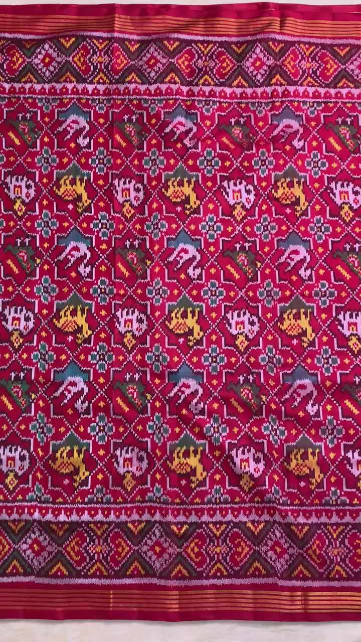 - Detailed double ikat weaving technique, where both the warp and weft threads are dyed before weaving, is the cornerstone of Patola's distinct character. This meticulous process allows for the creation of intricate geometric and floral patterns on both sides of the saree, a hallmark of a genuine Patola