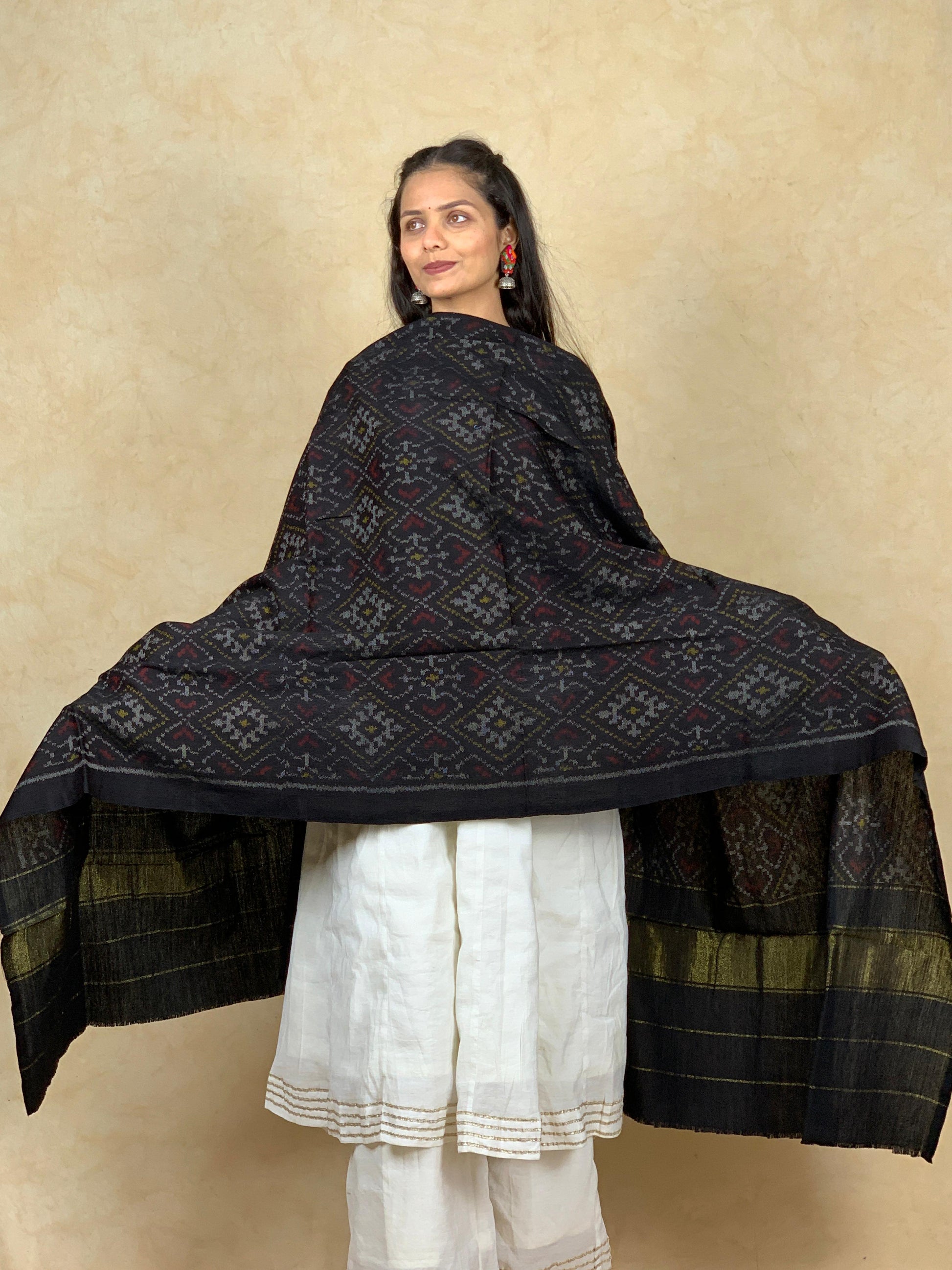 Experience the luxury and craftsmanship of the Patola Shawl. This pure woollen shawl is 2.5 feet long and 35 inches wide, providing warmth and elegance. Handmade with intricate details, our Patola Shawl is a testament to quality and style.