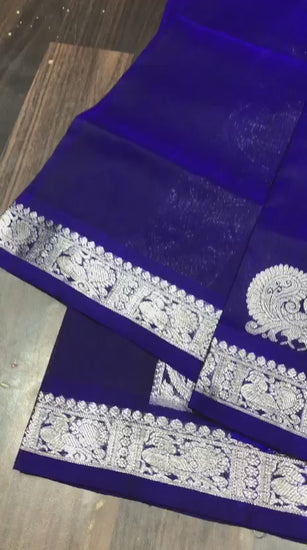 Dry clean only. To protect the delicate threads of the sari, please avoid any pressure on the tips- avoid brush cleaning, or wringing. Iron on medium heat or spread a towel on top of the saree during ironing. Steam iron is recommended. It is ideal to dry clean stained silk sarees immediately. Unfold and change the fold of the silk sarees from time to time. This will help avoid tears and damage along the creases. Store your silk sarees by wrapping them in soft muslin clothes or fabric saree