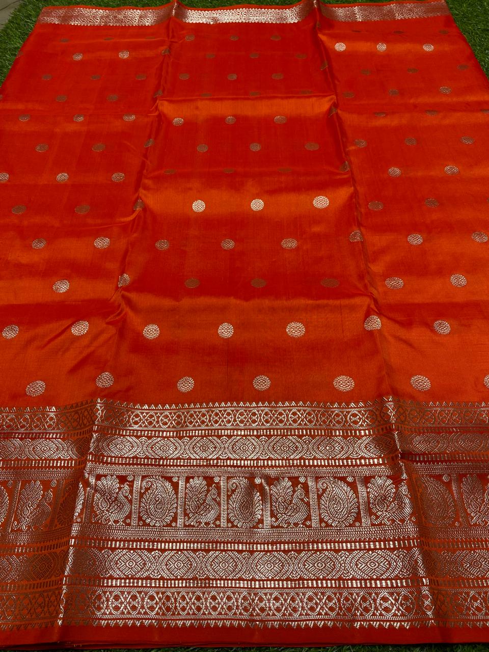 Dry clean only. To protect the delicate threads of the sari, please avoid any pressure on the tips- avoid brush cleaning, or wringing. Iron on medium heat or spread a towel on top of the saree during ironing. Steam iron is recommended. It is ideal to dry clean stained silk sarees immediately. Unfold and change the fold of the silk sarees from time to time. This will help avoid tears and damage along the creases. Store your silk sarees by wrapping them in soft muslin clothes or fabric saree
