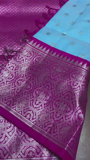Experience pure elegance with our Vishakha venkatagiri pattu sarees. Hand-loomed and featuring exquisite hand work, these sarees are truly a masterpiece. The 12 inch border adds a touch of luxury, making it a must-have for any discerning saree lover.